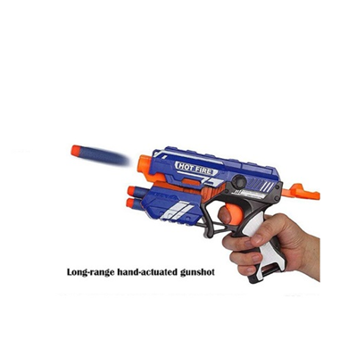 این تفنگ اسباب بازی ، یک تفنگ BLAZE STORM می باشد که حاوی 5 عدد تیر فومی بوده شامل 3 عدد گلوله فومی نرم با سری صاف و 2 عدد گلوله فومی با سر مکنده .جنس تفنگ اسباب بازی پسرانه از پلاستیک ABS بوده و دارای کیفیت ساخت و طراحی بسیار خوبی است که مواد اولیه استفاده شده در این اسباب بازی درجه یک بوده و برای کودکان مضر نمی باشد. تیرها نیز از فوم مقاوم و نرم میباشد که به کودکان آسیبی نمیزنند و لی در زمین بازی باید مراقب چشمان طرف مقابل باشید.برای بازی ابتدا تیرها را درون لوله قرار دهید و سپس تیر را درون تفنگ در محل مناسب خود جاگذاری کنید و محکم کنید. با فشار دادن اهرم روی تفنگ به عقب تفنگ را آماده پرتاب تیر کنید و سپس ماشه را بکشید تا تیر شلیک شوند. قدرت پرتاب تیر خوب بوده و کودکان بالای هشت سال میتوانند براحتی با این تفنگ اسباب بازی ، بازی کنند و از بازی خود لذت ببرند.تمامی این مجموعه درون یک بسته بندی قرار گرفته است که نام برند بروی جعبه قابل مشاهده است و توضیحات نیز در مورد اسباب بازی در پشت جعبه به نمایش گذاشته شده است.