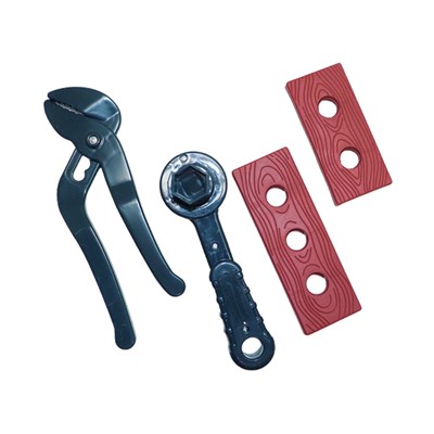 - دارای : 2 مته دوسو و چهارسو، 3 پیچ و مهره، دریل دستی، 2 تخته، انبر و آچار