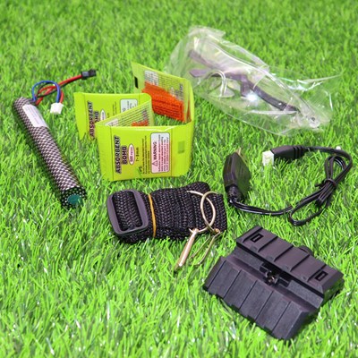 - کابل شارژ USB، عینک محافظ، بسته پیچ و مهره، چراغ قوه قابل نصب، مگسک (هدفگیری)، خمپاره انداز دکوری قابل جداسازی (غیرعملیاتی)