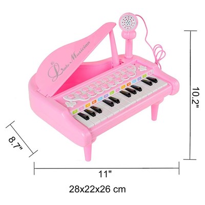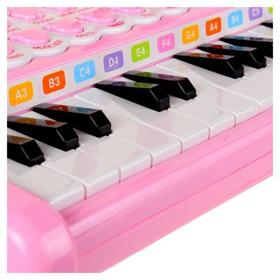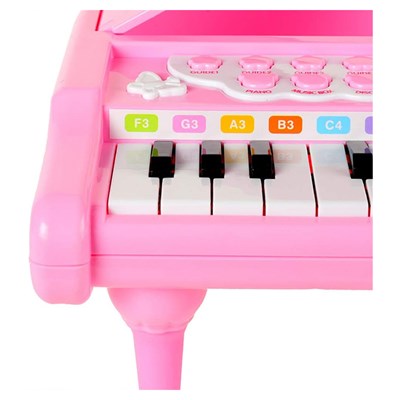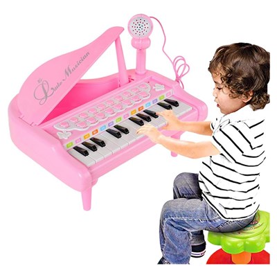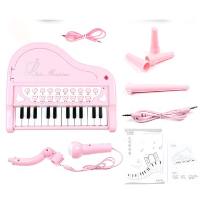اسباببازی پیانو آموزشی ۲۴ کلید با طراحی زیبا و کاربری آسان، یک گزینهی عالی برای آشنایی کودکان با دنیای موسیقی است. این پیانو دارای ورودی MP3 برای اتصال گوشی و پخش آهنگ دلخواه بوده و با استفاده از میکروفون سیمی، کودک میتواند آواز بخواند یا قصهگویی کند و لحظاتی شاد و آموزشی را تجربه نماید. بدنه آن از پلاستیک بادوام و غیرسمی ساخته شده است و همراه با ۳ عدد پایه، جک اتصال، پایه نگهداری میکروفون، کابل AUX و دفترچه راهنما عرضه میشود. این محصول با ۴ عدد باتری قلمی کار میکند (در جعبه موجود نیست) و برای کودکان بالای ۳ سال مناسب است.