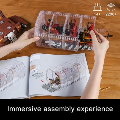 لگو کشتی داخل بطری مدل 10066 از برند معتبر مولد کینگ (Mould King)، یک مجموعه خلاقانه و چشمنواز با 2488 قطعه لگویی است که امکان ساخت یک کشتی دزدان دریایی زیبا درون بطری شیشهای شبیهسازیشده را فراهم میکند. این مدل با پایه نمایشی مخصوص طراحی شده تا پس از ساخت، جلوهای دکوری و شیک داشته باشد. قطعات این مجموعه از پلاستیک مرغوب و غیرسمی (ABS) ساخته شدهاند و اتصال محکم و بادوامی دارند. طراحی دقیق و کیفیت بالای قالبگیری، تجربهای لذتبخش از مونتاژ را برای علاقهمندان فراهم میکند. این محصول برای سنین بالای 14 سال مناسب است و گزینهای عالی برای هدیه به طرفداران لگو، مدلهای دکوری و کلکسیونرها محسوب میشود.