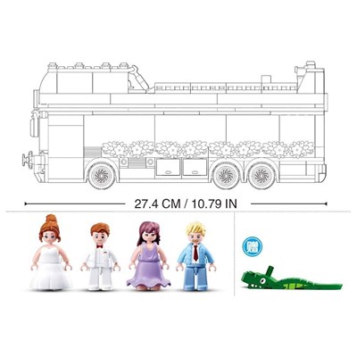 لگو اتوبوس عروسی مدل B0769 یک ست زیبا و رنگارنگ از مجموعهی Girls Dream است که صحنهای شاد و عاشقانه از جشن عروسی را بازسازی میکند. این لگو شامل ۴ مینیفیگور عروس، داماد و دوستان آنها بوده و از ۳۷۹ قطعه لگویی ساخته شده است. تمام قطعات از پلاستیک باکیفیت و غیرسمی تولید شدهاند تا تجربهای ایمن و لذتبخش برای کودکان فراهم شود. طراحی دوطبقهی اتوبوس با تزئینات گل و رنگهای ملایم، آن را به مدلی جذاب برای بازی و دکور تبدیل کرده است. این لگو برای کودکان ۶ سال به بالا مناسب است و به تقویت خلاقیت، تمرکز و مهارت ساختوساز کمک میکند.