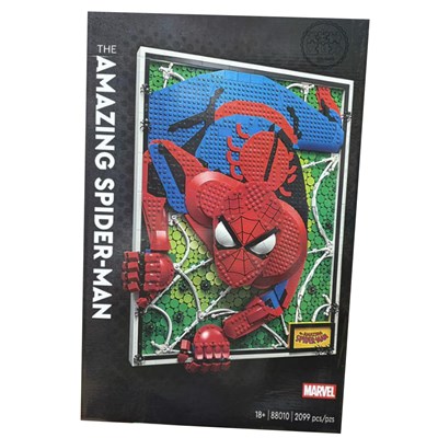 لگو مارول تابلوی مرد عنکبوتی مدل 88010 یک اثر هنری سهبعدی با طراحی برجسته (3D Relief Art) است که ظاهری واقعی و پویا از مرد عنکبوتی را به تصویر میکشد. این مجموعه شامل 2099 قطعه لگویی از پلاستیک باکیفیت و غیرسمی است و پس از ساخت، میتواند هم روی دیوار نصب شود و هم در ویترین یا قفسه نمایش قرار گیرد. گزینهای فوقالعاده برای علاقهمندان به لگو و دنیای مارول که به دنبال دکوری خاص و کلکسیونی هستند. مناسب برای افراد ۱۸ سال به بالا.