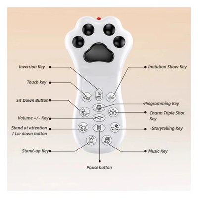 این گربه رباتیک نه تنها یک حرکت ثابت را انجام نمیدهد بلکه میتواند راه برود، بنشیند، دراز بکشد یا حرکات دیگری شبیه به یک گربه واقعی انجام دهد.یکی از جذابترین ویژگیهای این ربات، توانایی رقصیدن است. این گربه میتواند به موسیقی یا آهنگهای از پیش برنامهریزیشده، حرکات موزون و بامزهای انجام دهد که لحظات شادی را برای کودک ایجاد میکند.کودک میتواند با استفاده از یک ریموت کنترل، تمام حرکات و عملکردهای گربه را هدایت کند. این ریموت به کودک اجازه میدهد تا گربه را به جلو، عقب، چپ و راست حرکت دهد یا حالتهای مختلف آن (مانند رقصیدن یا نمایش یک ترفند) را فعال کند.