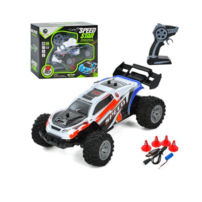 ریموت کنترل طرح تفنگی همراه با حرکت در تمامی جهات، دست شما را برای مانورهای پرهیجان کاملاً باز میگذارد. این ماشین با چراغهای LED درخشان و کمکفنرهای فعال، حتی در مسیرهای ناهموار هم ظاهری جذاب و عملکردی نرم دارد.این محصول مناسب کودکان 3 سال به بالا است و تنها به 2 عدد باتری قلمی AA برای ریموت کنترل نیاز دارد (درون بسته موجود نیست).
