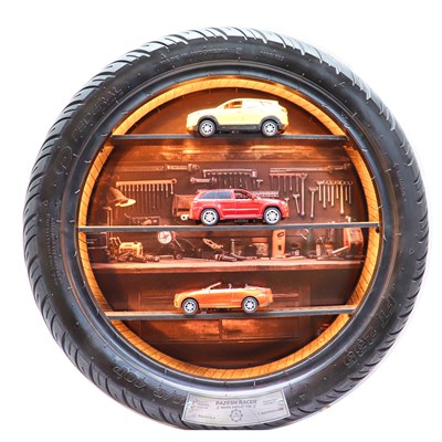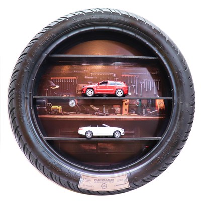 باکس دکوری طرح لاستیک (بدون ماشین) یک شلف جذاب و متفاوت برای نمایش ماکتها و وسایل دکوری است که با قطر ۴۸ سانتیمتر و طراحی سهطبقه MDF ساخته شده است. کفی چاپدار MDF جلوهای زیباتر به آن بخشیده و وجود نور LED نمای این باکس را چشمنوازتر میکند. این محصول بدون نیاز به باتری و بهصورت مستقیم با برق کار کرده و گزینهای عالی برای اتاق کودک و نوجوان محسوب میشود. باکس طرح لاستیک برای چیدمان ماکتهای فلزی و لوازم دکوری مناسب بوده و برای سنین بالای ۳ سال قابل استفاده است.