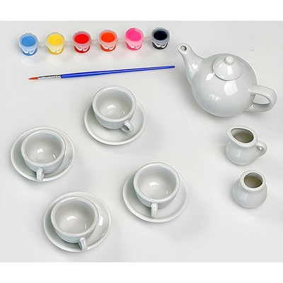 ست چایخوری رنگآمیزی سرامیکی مدل 868، شامل 14 قطعه متنوع و جذاب است که امکان خلاقیت و سرگرمی را برای کودکان فراهم میکند. این مجموعه شامل 4 فنجان، 4 نعلبکی، 1 قوری، 1 قندان، 1 سرپوش، 1 شکرپاش به همراه 6 رنگ آبرنگ متنوع شامل مشکی، صورتی، نارنجی، قرمز، زرد و آبی و 1 قلمو میباشد. ساخته شده از سرامیک چینی باکیفیت، این ست مناسب کودکان بالای 3 سال است و علاوه بر سرگرمی، به تقویت خلاقیت و هماهنگی دست و چشم کودکان کمک میکند.