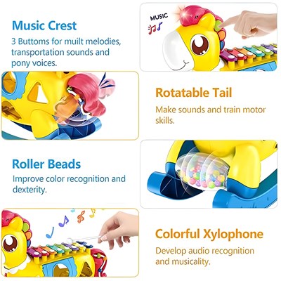بلز هانگر طرح اسب پونی زرد مدل 8038 یک اسباب‌بازی آموزشی و سرگرم‌کننده مناسب کودکان بالای ۱۸ ماه است که با طراحی جذاب و ابعاد 30.5*28.5*11 سانتی‌متر، فضایی شاد و هیجان‌انگیز برای بازی کودک فراهم می‌کند. این محصول مجهز به بلز برای آموزش اولیه موسیقی بوده و به کودک کمک می‌کند تا با نت‌های موسیقی آشنا شود. همچنین با داشتن پازل جایگذاری اشکال و بازی مهره و میله، زمینه آموزش اعداد، اشکال و رنگ‌ها را فراهم کرده و موجب تقویت مهارت‌های حرکتی ظریف، هماهنگی چشم و دست و حفظ تعادل کودک می‌شود.