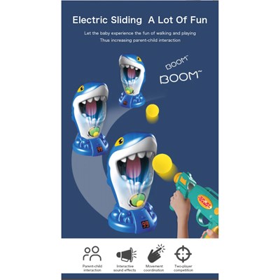 تفنگ اسباب بازی تیر توپی به همراه کوسه گرسنه مدل Shark air shooting foam ball target toys kids popper guns_اسباب بازی