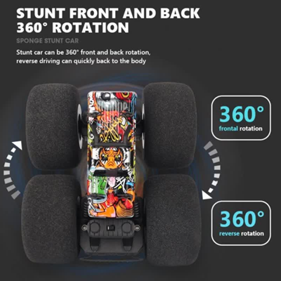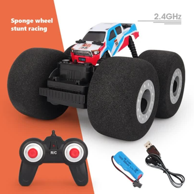 قابلیت های ماشین کنترلی آفرود چرخ اسفنجی آبی RC STANT CAR WITH SOFT WHEELS MZ :