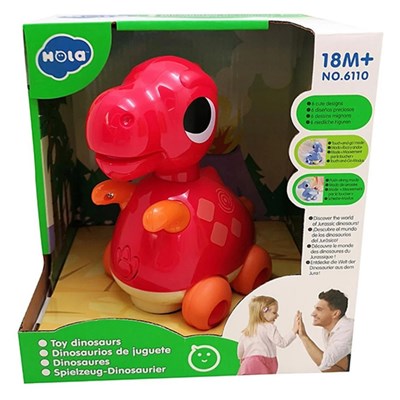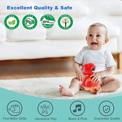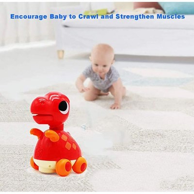 بالای سر دایناسور چراغهایی قرار دارد که شروع به روشن شدن می شود و در قسمت انتهای دایناسور که دم دایناسور قرار دارد حرکت می کند ، که حرکت این اسباب بازی باعث میشود که کودک را به راه افتادن ترغیب می کند .