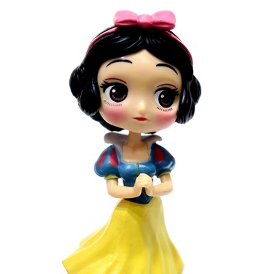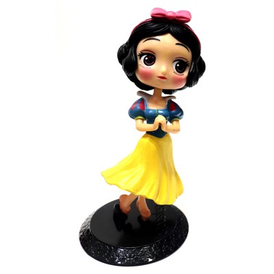 این اکشن فیگور یک عدد فیگور از شخصیت کارتونی سفید برفی است که بصورت انیمیشن تولید و در درسترس همه سنین قرار دارد.داستان پرنسس زیبایی که توسط نا مادری خود با سیب مسموم شد می باشد.کودکان و نوجوانان از طرفداران این شخصیت هستند.این مجموعه می تواند برای کودکان و برای بزرگسالان به عنوان فیگور یا مجسمه ویترینی استفاده گردد.این فیگور در بسته بندی پلاستیکی می باشد و جعبه ندارد.عروسک فیگور سفید برفی دارای یک پایه مشکی رنگ است، می توانید عروسک را روی آن پایه قرار دهید و از آن در دکور اتاق، کمد، ویترین و هرجایی که می خواهید استفاده کنید.جنس این فیگور از پلاستیک سخت و تو پر است. حتی موها و لباس های این فیگور نیز از پلاستیک است.این اکشن فیگور فقط قابلیت چرخش در سر را دارد و سایر اعضای این عروسک قابلیت حرکت ندارد.