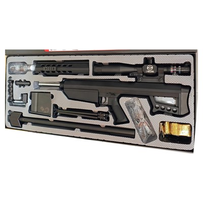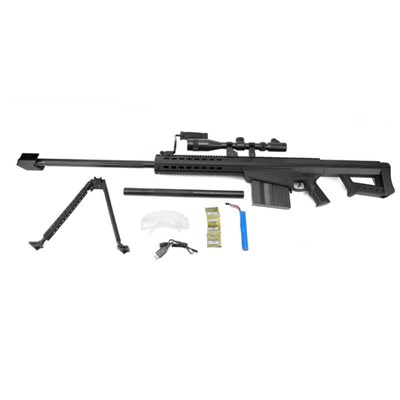 - دارای : دوربین قابل نصب و تنظیم زوم و لیزر جانبی، 12 بسته تیر ژله ای (500 عدد هر بسته)، کابل شارژ USB، بند کمری و عینک محافظ