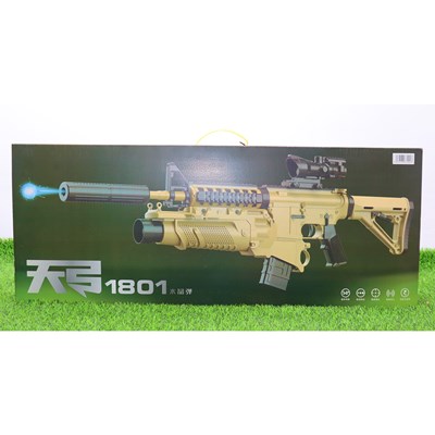 تفنگ اسباب بازی شارژی تیر ژلهای دو حالته مدل 1801 با قابلیت شلیک تکتیر و رگباری، مجهز به باتری شارژی ۷.۴ ولت و قنداق جداشدنی با محل قرارگیری باتری است. این تفنگ دارای خمپارهانداز دکوری قابل جداسازی (غیرعملیاتی) و قابلیت نصب/جداسازی دسته کناری (گریپ) برای شخصیسازی میباشد و از پلاستیک با کیفیت مطابق استانداردهای اروپایی (CE) ساخته شده است. پک محصول شامل ۵ بسته تیر ژلهای (۵۰۰ عدد هر بسته)، بند کمری، خشاب قابل پر کردن، یدک (دستی) بغل اسلحه، دوربین قابل نصب، کابل شارژ USB، عینک محافظ، بسته پیچ و مهره، چراغقوه قابل نصب، مگسک (هدفگیری) و خمپارهانداز دکوری قابل جداسازی میباشد. این محصول مناسب بالای ۱۴ سال است و استفاده از عینک محافظ هنگام بازی توصیه میشود.