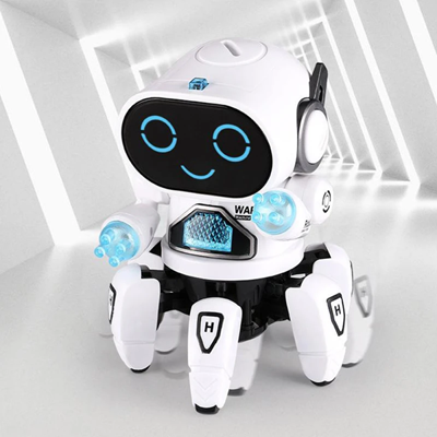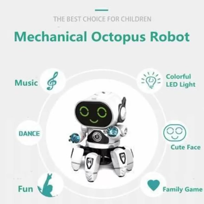 ربات خرچنگی موزیکال یک ربات کوچک می باشد که دارای رنگ های شاد است. این ربات از جنس پلاستیک با کیفیت تولید شده است . ربات دارای شش پا به شکل خرچنگ است که قابلیت حرکت کردن دارند. دستهای ربات نیز حالت شفاف دارد و بالا و پایین می روند. وقتی که ربات را روشن کنید شروع به حرکت پاها و دست ها می کند که این حرکت بسیار جالب خواهد بود و کودک را شاد می کند. در این ربات چراغ های رنگی طراحی شده است که در قسمت صورت ، دست ربات قرار گرفته اند و با روشن شدن ربات آنها نیز روشن می شوند همچنین در قسمت زیره ی این اسباب بازی , یک چراغ وجود دارد که رقص نور بسیار جذابی دارد و کودک را ساعت ها سرگرم خودش می کند . این اسباب بازی موزیکال دارای هفت رنگ می باشد که در هنگام استفاده از آن , علاوه بر رنگ چشم های آن ، موزیک هایش هم تغییر می کند.