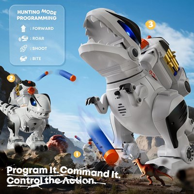 ربات دایناسور کنترلی تیرانداز مدل 8809 با قد 57 سانتیمتر، یک اسباببازی جذاب و ماجراجویانه است که ترکیبی از فناوری مدرن و دنیای هیجانانگیز دایناسورها را به نمایش میگذارد. این ربات با فرکانس 2.4 گیگاهرتز کنترل میشود و دارای پرتابگر تیر اسفنجی نرم است که بازی را هم ایمن و هم پرتحرک میسازد. حرکات طبیعی و پویا مانند راه رفتن، چرخیدن، غرش، شکار و پرتاب تیر، همراه با رقص و پخش موسیقی هماهنگ با ریتم، تجربهای زنده و پرهیجان برای کودکان فراهم میکند. دایناسور مدل 8809 با قابلیت برنامهریزی تا 50 فرمان حرکتی و صوتی، به کودکان امکان میدهد حرکات و واکنشهای اختصاصی بسازند. حسگر لمسی آن نیز با لمس پیشانی فعال میشود و دایناسور با حرکت سر و دم و ایجاد صدا واکنش نشان میدهد. از دیگر ویژگیهای بامزه آن میتوان به تکان دادن دم، بالا آوردن سر و صدای خندهدار "پُف" اشاره کرد. این مجموعه شامل 10 تیر اسفنجی، ریموت کنترل، باتری قابل شارژ و کابل شارژ است. بدنه از پلاستیک باکیفیت و مطابق با استانداردهای اروپایی (CE) ساخته شده و کنترل آن با دو باتری قلمی کار میکند (در جعبه موجود نیست). مناسب برای کودکان بالای 3 سال.