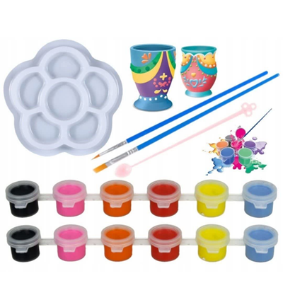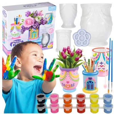 • گلدان های خام و بی رنگ که با رنگ‌های متنوع و جذاب و ابزار لازم برای رنگ‌آمیزی ، رنگ می شوند