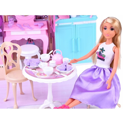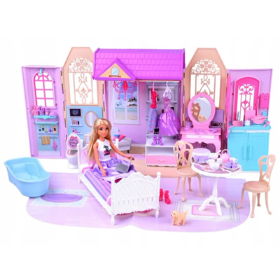این خانه عروسکی1 طبقه، شامل عروسک باربی 30 سانتیمتری، آشپزخانه، حمام، اتاق خواب، اتاق غذاخوری و رختکن است. با 20 تکه سرویس غذاخوری، 7 تکه لوازم آشپزخانه و 14 تکه لوازم شخصی، بازیهای تخیلی هرگز تکراری نخواهند شد.خانه به راحتی تا میشود و طول آن در حالت باز به 73 سانتیمتر میرسد تا فضای بازی بزرگتری فراهم شود همچنین خانه دارای زنگ و قفل در است!