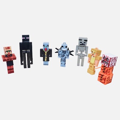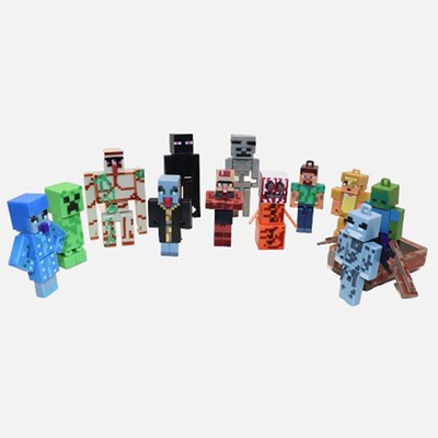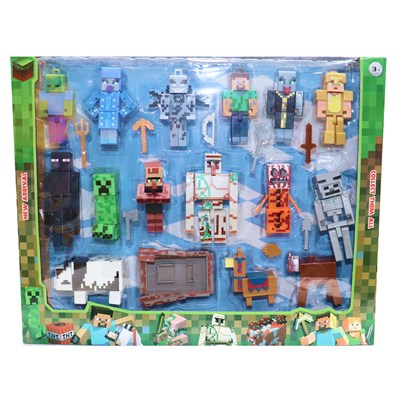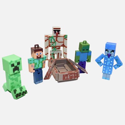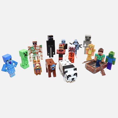 - شامل 15 فیگور از شخصیتهای ماینکرافت، 8 سلاح و یک قایق