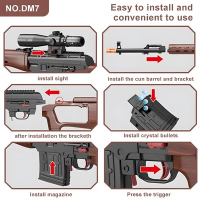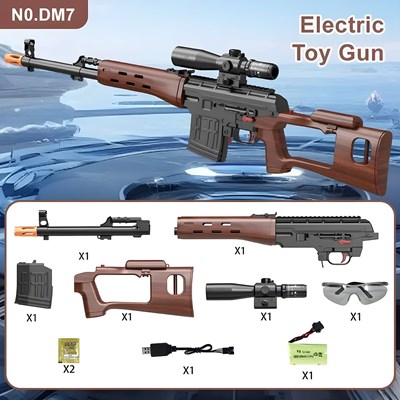 تفنگ تیر ژلهای DM7 با طول ۹۶ سانتیمتر و طراحی حرفهای، گزینهای هیجانانگیز برای علاقهمندان به بازیهای اکشن است. این تفنگ به باتری قابل شارژ ۳.۷ ولتی مجهز شده و قابلیت پرتاب تیر با دقت و سرعت بالا را دارد. در بستهبندی محصول اقلامی شامل قنداق اسلحه، دوربین غیرقابل تنظیم، لوله تفنگ، عینک محافظ، کابل شارژ، باتری شارژی و دو بسته تیر ژلهای قرار گرفته است. بدنه این محصول از پلاستیک باکیفیت و مطابق با استانداردهای اروپایی (CE) ساخته شده و برای افراد بالای ۱۴ سال مناسب است.