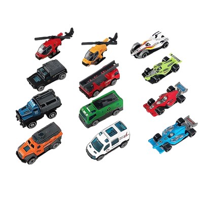 ست ماشین فلزی ۱۲ عددی مدل 3097 شامل ۱۰ عدد ماشین و ۲ عدد هلیکوپتر است که با طراحی جذاب و کیفیت ساخت بالا عرضه میشود. طول هر ماشین ۷ سانتیمتر و طول هلیکوپترها ۱۰ سانتیمتر بوده و همگی در مقیاس 1:64 ساخته شدهاند. بدنه فلزی مقاوم این ست دوام بالایی در برابر بازی و استفاده مداوم دارد و آن را به انتخابی مناسب برای بازی و کلکسیون تبدیل میکند. این مجموعه برای کودکان بالای ۳ سال مناسب است.