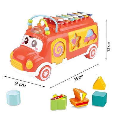 این اسباب‌بازی علاوه بر بخش موسیقی، دارای پازل جایگذاری اشکال است که به کودک کمک می‌کند مفاهیم اشکال هندسی و رنگ‌ها را به شیوه‌ای جذاب بیاموزد. قرار دادن قطعات در جای صحیح، موجب تقویت هماهنگی چشم و دست، افزایش دقت و تمرکز و رشد مهارت‌های حرکتی ظریف می‌شود. بازی با این محصول همچنین به تقویت مهارت‌های تعادلی و درک فضایی کودک کمک می‌کند.