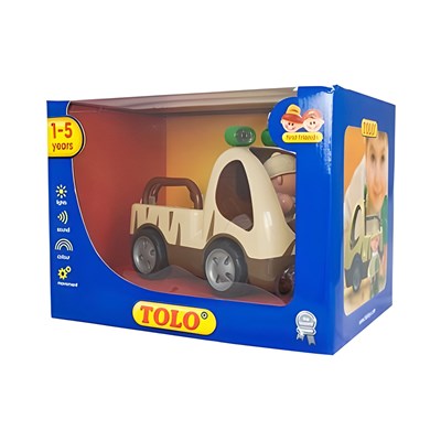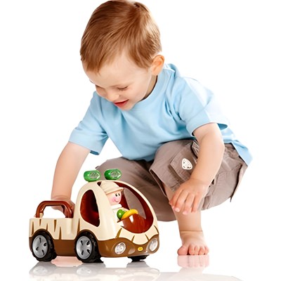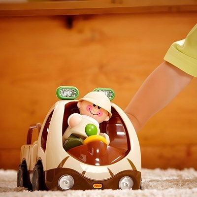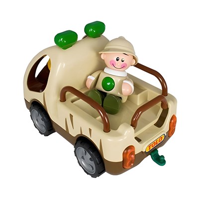 این ماشین دارای یک عروسک کوچک جهانگرد است و کودک میتواند به صورت جداگانه با آن بازی کند. این ماشین نیاز به باتری دارد و زمانی که سر عروسک را فشار دهید شروع به حرکت می کند. با فشار دادن دکمه روی فرمان چراغهای روی سقف ماشین روشن میشود و شروع به بوق زدن میکند. این اسباب بازی موزیکال قدرت تخیل و خلاقیت کودک را پرورش میدهد. این اسباب بازی باعث افزایش مهارتهای دیداری، لامسه، شنیداری و تقویت هماهنگی میان چشم و دست کودک میشود.